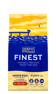 Fish4Dogs Finest Puppy er produsert i Norge av hvit fisk fra nordatlanteren. Sammensetningen i dette foret er spesielt utviklet for valper. Dette foret har enda høyere innhold av fisk, og gir et fullför med mye protein som gjør det ideelt ettersom valper er i hurtig vekst.
