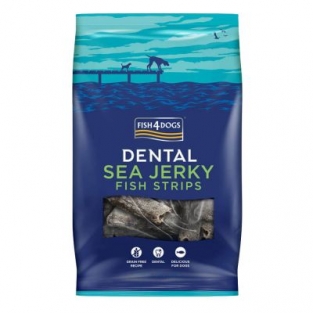 Sea Jerky Skinny Strips er ca. 100 mm lange, 30 mm brede og 7 mm tykke. Disse godbitene har en grov tekstur som gjør dem utmerket til å fjerne samt forhindre videre utvikling av tannstein.