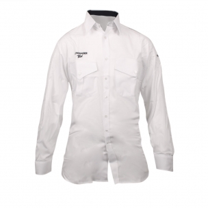 Hvit langarmet skjorte til dame. Stavanger Taxi logo brodert på høyre bryst og på venstre arm.