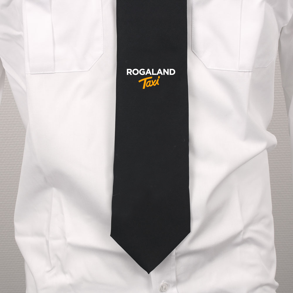 Sort slips med Rogaland Taxi logo. Med strikk.